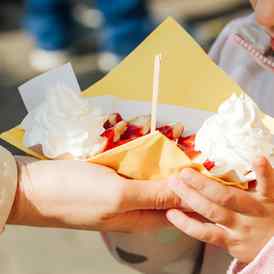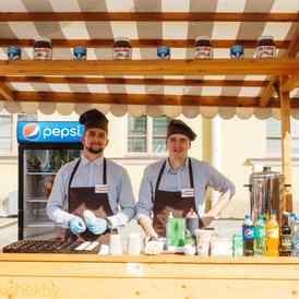 Кейтеринг «Еще оладушек!» предлагает новый формат белорусской уличной еды: драники и оладушки, приготовленные на специальном гриле и дополненные топпингами и сиропами.